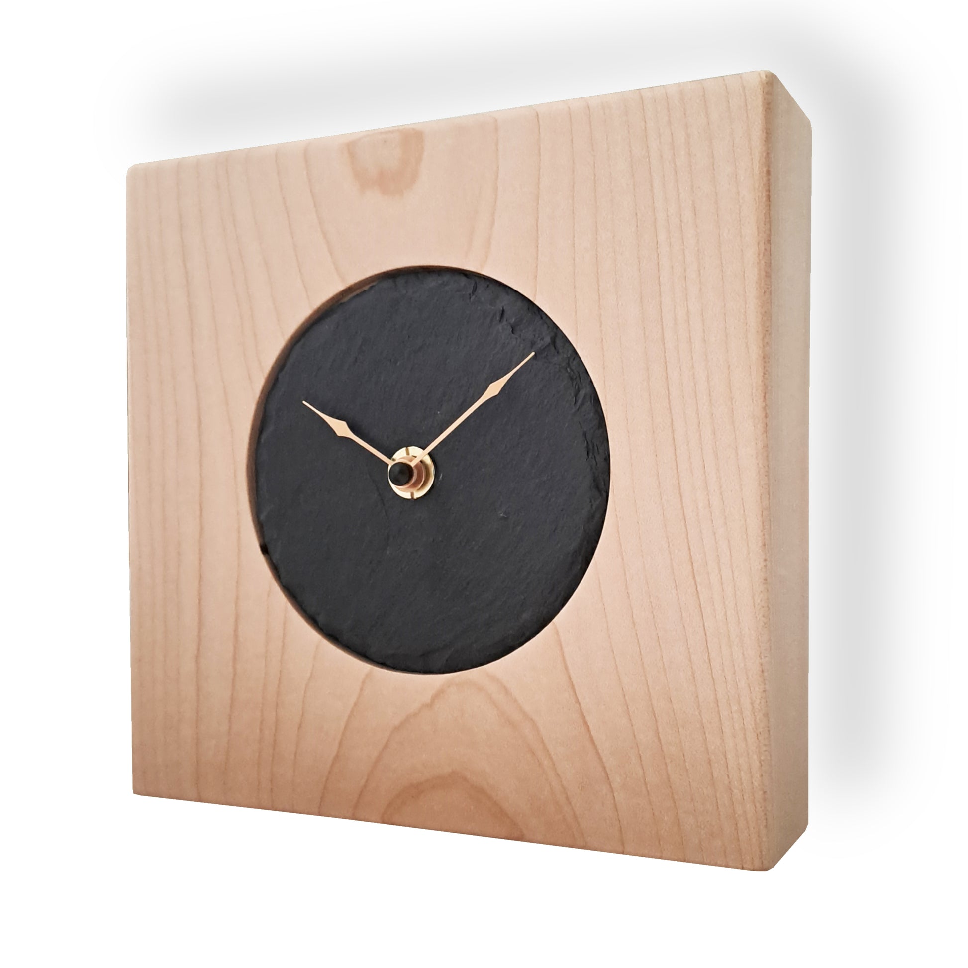 Uhr aus einem Stück massivem Holz Ahorn - Ziffernblatt aus Schiefer - handgefertigt